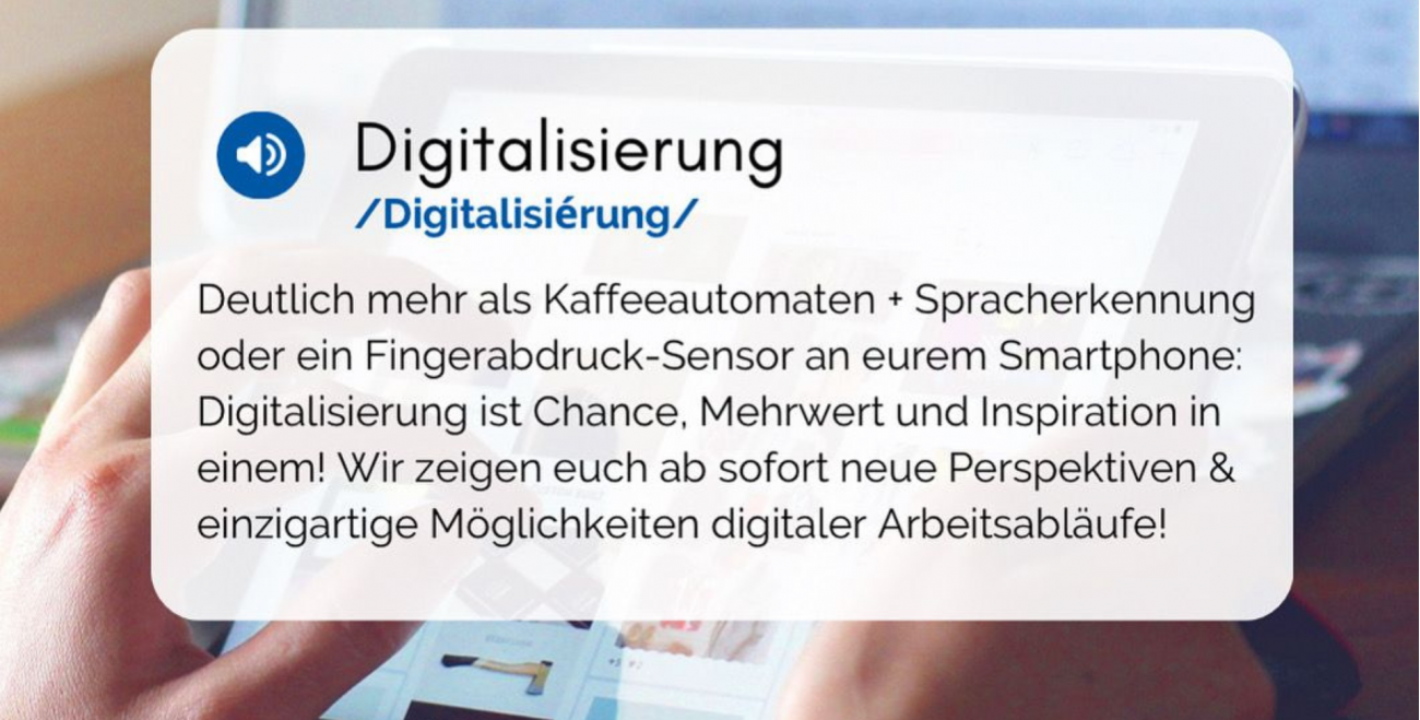 Digitalisierung bedeutet im Ursprung, dass die Aufgaben & Abläufe (im Business Kontext) mit Hilfe digitaler Prozesse vereinfacht werden und dadurch Zeit, Aufwand und unsere Ressourcen im Arbeitsalltag eingespart werden! Der Fokus liegt also auf cleveren neuen Prozessen, die uns die Möglichkeit geben, deutlich effizienter zu arbeiten! 🔝