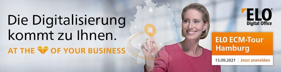 Am 15. September ist es wieder soweit: die ELO ECM-Tour kommt nach Hamburg. Sie wollen mehr darüber erfahren, wie modernes Informationsmanagement in Ihrem Unternehmen aussehen kann? Dann bietet die ELO ECM-Tour viele spannende Einblicke für Sie: von Live-Demos zur effizienten Informationsbewältigung mit der ELO ECM Suite, bis hin zu vielfältigen Vorträgen zur Erweiterung Ihres Digitalisierungs-Know-hows, zu Themen wie digitale Archivierung und Betriebsprüfung.